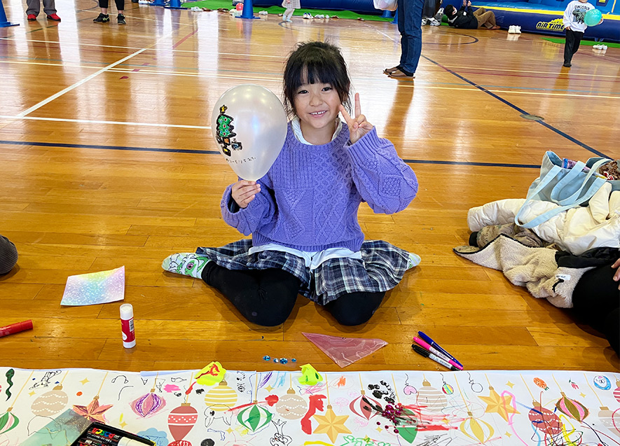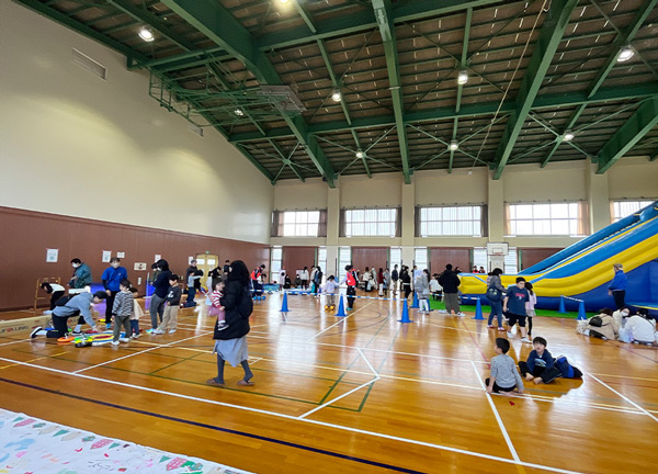 さらには、大型すべり台や約7メートルのクライミングウォールなどのエア遊具(協力:㈱Teals)やキッズひろば、アートコーナーなど様々な遊びに触れられる各種プログラムを用意。外の寒さを感じさせないほどの熱気と笑い声に包まれた。