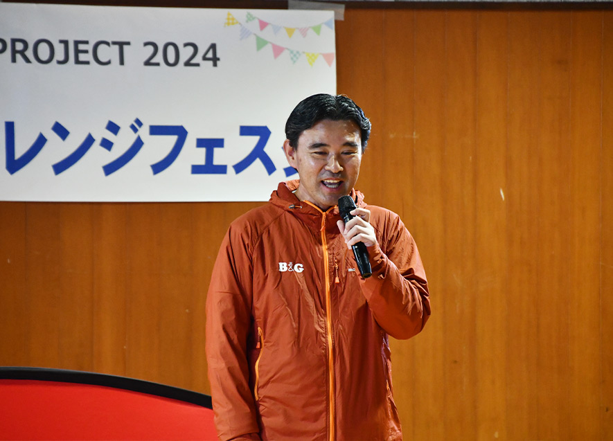 当財団常務理事の朝日田智昭は、被災者に対するお見舞いを述べた後、「日本財団HEROsのアスリートをはじめ、色々な方々の協力のおかげで本イベントを開催することができた」と話したうえで、「子どもたちが元気になると周りの大人や地域も元気になる。本日は笑顔いっぱいで思いきり遊んでください」とあいさつ。