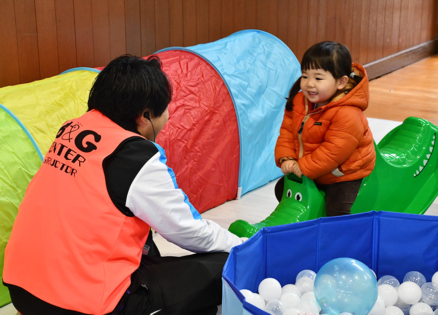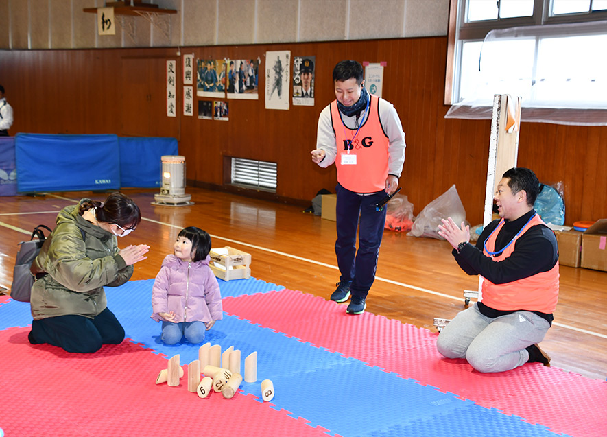 今回は、新潟県・富山県・長野県・愛知県・茨城県から応援に駆け付けたB&G指導員が、子どもたちと一緒に遊びに熱中し会場全体を盛り上げて、寒さを吹き飛ばした。