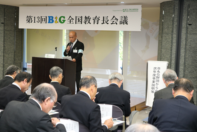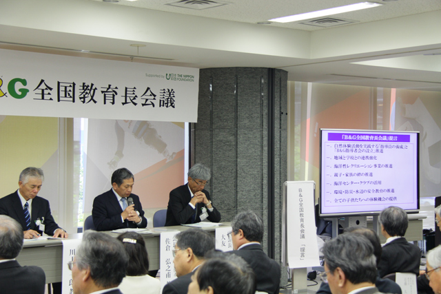 「B&G全国教育長会議」は、海洋センター所在自治体の教育長が一堂に会し、教育現場が抱えるさまざまな課題について話し合う会議です。2002年度に第1回会議を開いて以来、毎年開催しております(2006、2009年度は休止)。