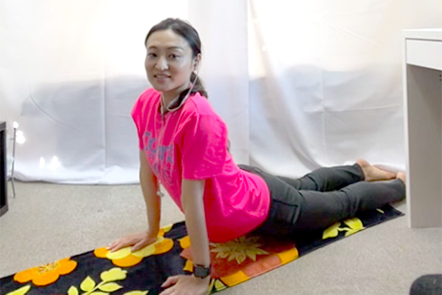 両腕で体を起こす動作。自然と笑顔があふれます。