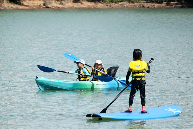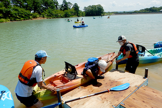 新型コロナウイルス感染対策を講じ、カヌー、SUP体験のほか、ストラックアウトなど陸上でのレクリエーションも行いました。天候にも恵まれ、皆さん心地よくカヌーやSUPに揺られていました。