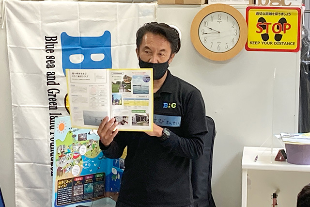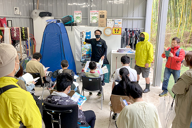 参加者は受付時に検温と体調確認を行い、事前アンケートを記入。その後、昨年、休眠預金の新型コロナウィルス対応緊急支援助成事業で整備した「更衣室兼器材置場」でオリエンテーションを実施。スタッフ紹介、年間の活動内容などについて説明しました。