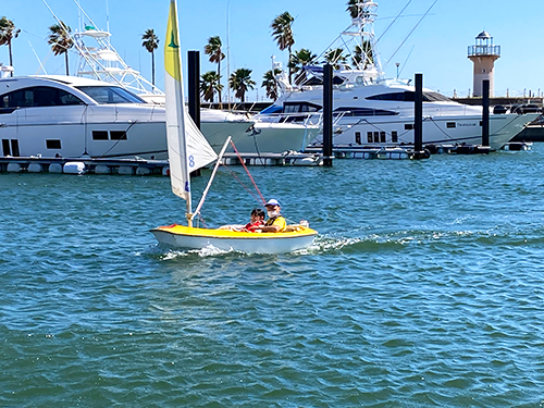 さらに学生たちは、港内でセイラビティ活動をしていたハンザ級ヨットにも乗船しました。風を利用して帆走するヨットに学生は新鮮な喜びを感じたようです。