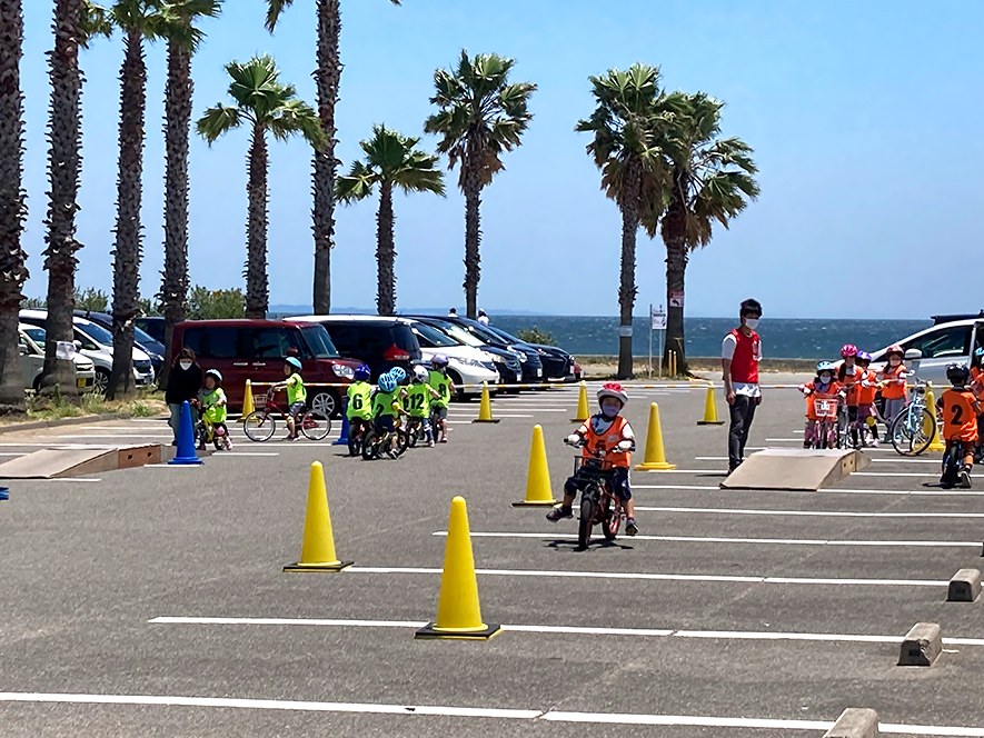 河芸マリーナでは、子どもを対象に「アクティブキッズクラブ」を組織し、様々なスポーツに取組んでいます。12日は、マリーナの駐車場を利用して「自転車乗り方教室」が開かれました。初めて自転車に乗る子どもがほとんどで、指導を受けて少しずつ乗れるようになると、緊張していた顔がどんどん笑顔に変わっていきました。