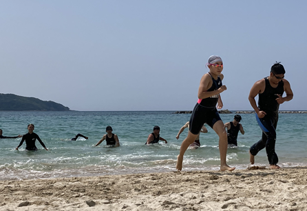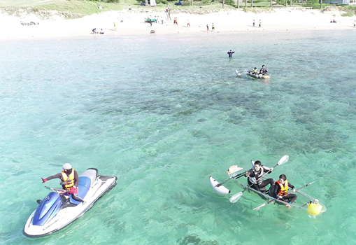 彼らは資格取得後、角島を望むホテル西長門リゾート前のビーチで、監視業務とクリアカヌー・SUP・バナナボートなどのアクティビティーを担当します。
