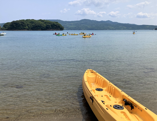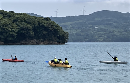 油谷青少年自然の家の活動水面は、日本海の美しく豊かな海を体験できる内湾の穏やかな水面です。初心者や障がいのある方も楽しく安全に活動できます。施設の海岸から500m程先には無人の“竹島”があり、カヌーで行くことも可能です。