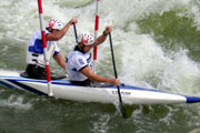 カヌーのワイルドウォーター競技で使われるカヌーです。この競技は、流れのある川を数百メートルから数キロ下ってタイムを競います。