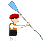 カヌーは「パドル」というものを両手で持ち、漕(こ)いで前に進みます。パドルは固定されていないので、使い方にはちょっとしたコツがいります。水面に漕ぎ出す前に、まずは練習してみましょう。