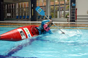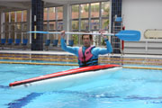 この動きはとても大事です。カヌーが横にグラグラする(「ローリング」といいます)のをコントロールすることで、今回のバランス テクニックが身につくだけでなく、次回のエスキモー ロールも上手くできるようになります。自分の下半身がカヌーになったと感じるぐらい、自由自在にコントロールできれば最高です。