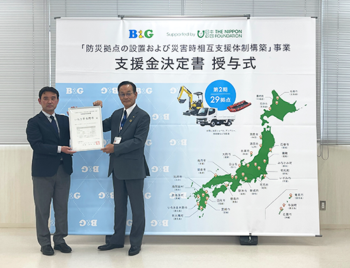 B&G財団は、2021年度から自治体と連携し、災害支援に即応できる機材と人材を備えた「防災拠点」を整備し、油圧ショベルとダンプカー、救助艇などの機材を配備すると共に、機材の操作方法と災害対応の研修を受けた人材を育成しています。