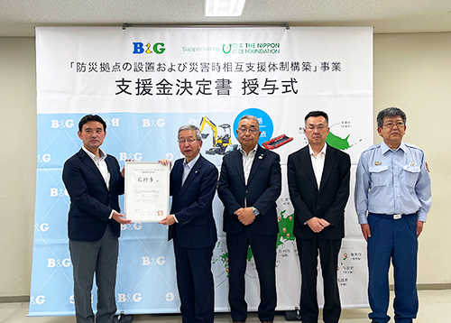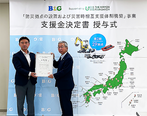 B&G財団は、2021年度から自治体と連携し、災害支援に即応できる機材と人材を備えた「防災拠点」を整備し、油圧ショベルとダンプカー、救助艇などの機材を配備すると共に、機材の操作方法と災害対応の研修を受けた人材を育成しています。