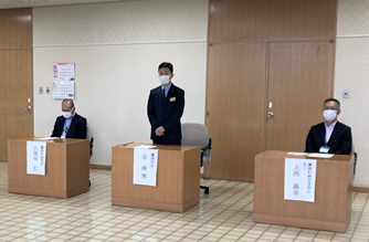 授与式には、鷹栖町 谷寿男町長、八尾谷仁副町長、上西義幸教育長など関係者約10名がご臨席される中、B&G財団理事長 菅原悟志から谷町長に、防災拠点整備・人材育成にかかる経費を3年間で総額3,900万円を上限に助成する「決定書」が手渡されました。