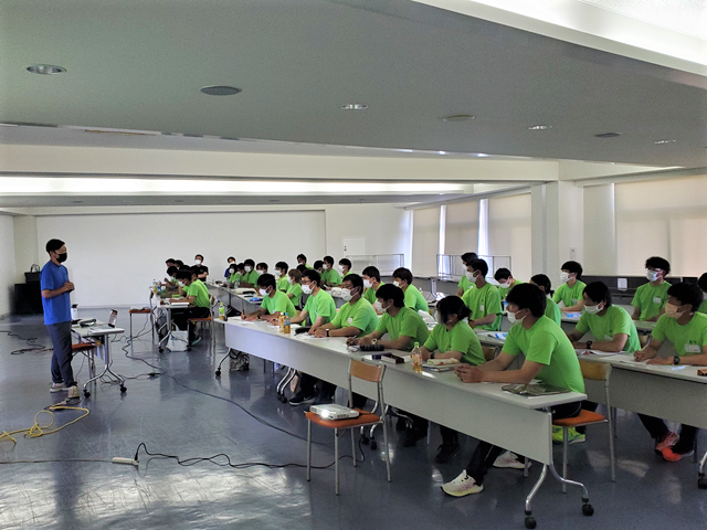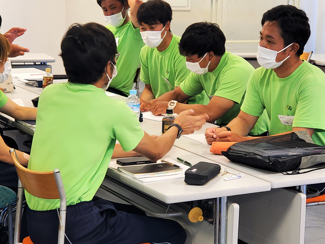 研修は、学科と実技のプログラムで構成され、学科研修では重機の基礎知識のほか、防災の観点から海洋センターのより良い活用法についてグループディスカッションを行いました。学科試験では8人が満点となるなど、研修生の意識の高さがうかがえました。