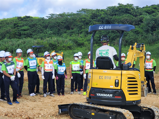 防災拠点設置自治体において実施している研修にとどまらず、災害時に重機操作ができる人材をさらに育成するため、第5回センター・インストラクター養成研修の研修生を対象とした「重機研修」を7月5日、6日の2日間、沖縄県本部町で実施しました。