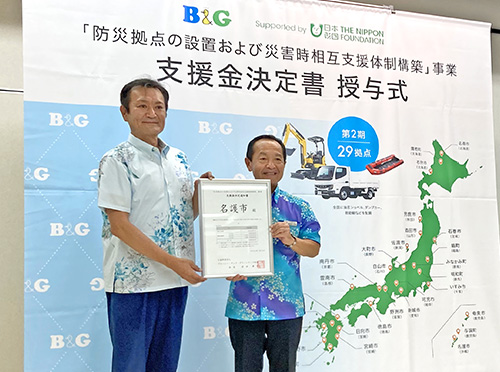 B&G財団は、2021年度から自治体と連携し、災害支援に即応できる機材と人材を備えた「防災拠点」を整備し、油圧ショベルとダンプカー、救助艇などの機材を配備すると共に、機材の操作方法と災害対応の研修を受けた人材を育成しています。