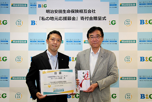 明治安田生命保険相互会社様から「私の地元応援募金」の寄付をいただきました