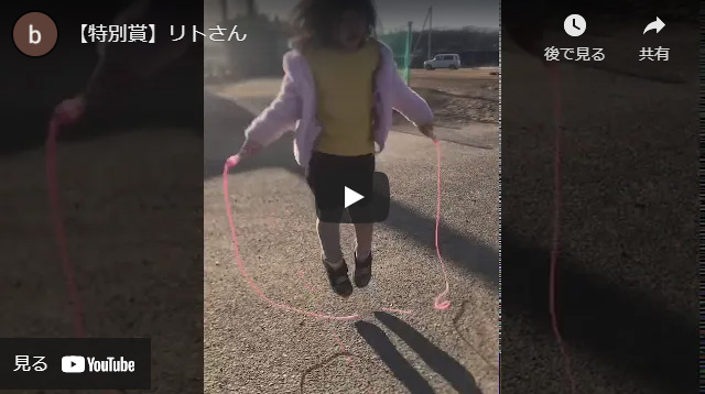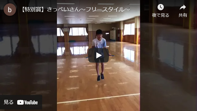 今回はランキング1位に輝いたハイレベルな「なわとび動画」と、アッと驚く妙技や、思わず笑顔になってしまう跳び方で特別賞に輝いた「なわとび動画」をご紹介いたします。