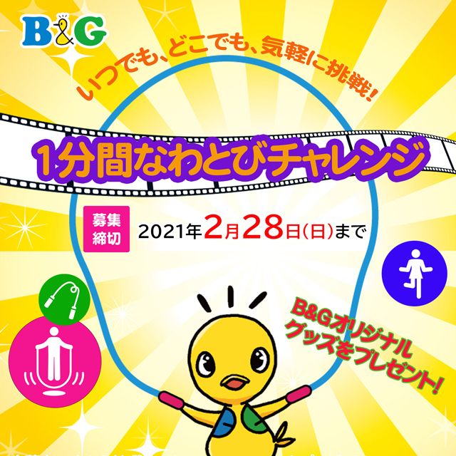 | 表彰 | 上位10名と特別賞5名にB&Gオリジナルグッズを贈呈いたします。 特別賞はインパクト重視!いろんな跳び方をお待ちしております! |