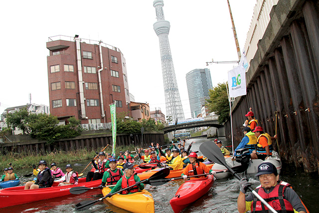 江戸川区の旧中川から東京スカイツリーの目の前まで流れる運河を、カヌー・SUPでツーリングしながら、海洋プラスチックごみ削減にむけて清掃活動を行う本イベント。3回目となる2021年度は、11月23日(火祝)、江戸川区大島小松川公園前河川敷から出艇し、ごみゼロを目指します!