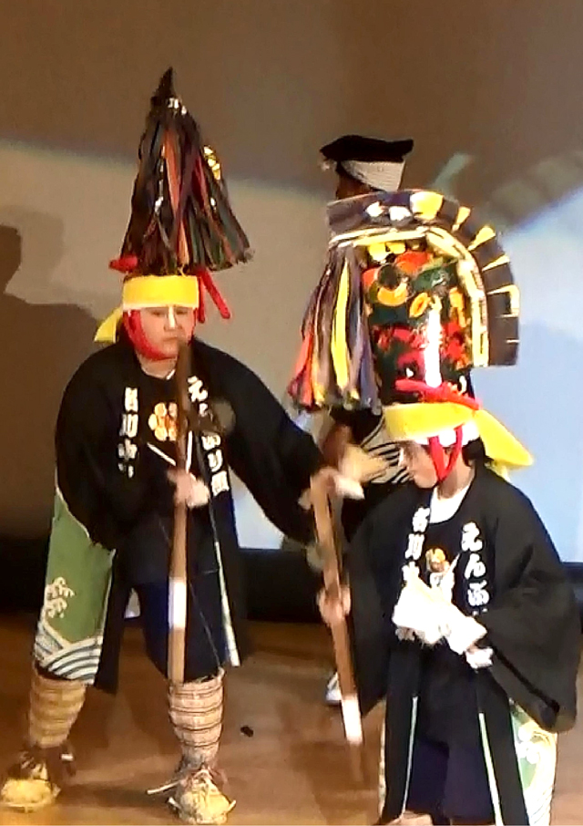 スペシャル わがまち"おもしろ達人" ホーム わがまち"おもしろ達人" 郷土芸能部門 青森県南部町「えんぶり」 No. 096 青森県南部町 「えんぶり」 2016.03.28 UP Tweet 郷土芸能名 えんぶり 撮影地:南部町立町民ホール、他 えんぶり 青森県南地方を中心に行われる、春を呼ぶ伝統芸能。 田植えの道具である「朳(えぶり)」にちなんで呼ばれるようになった(※諸説あり)えんぶりは、馬の頭を象った「烏帽子(えぼし)」を被った太夫(たゆう)という舞い手が、田植え作業の土をならす動作を表現する「摺り(すり)」と呼ばれる独特な舞を披露する、豊作を祈願する神事儀礼的演技である。 えんぶりの合間には、「大黒舞」「恵比寿舞」といった子供たちによる可憐な祝舞も行われ、観客を和ませてくれる。