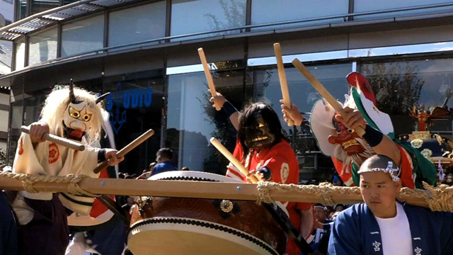 現在は、11月1日、2日、3日と祭りが行われていますが、3日(文化の日)の大祭には、「ベタ」「ソバ」「ショーキー」の面をつけた鬼神たちに追いかけられ、逃げ惑う子供の叫び声とそれをはやしたてる大人の嬌声で異様な興奮につつまれます。なかでも「ベタ」「ソバ」に祝棒でつかれると、子宝に恵まれるといい、「ショーキー」にささらで叩かれると、頭がよくなると言われています。
