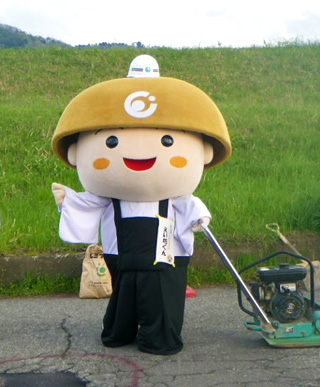 頭の笠は、永平寺町特産の「玉ねぎ」です。まん丸な目に愛嬌たっぷりのお顔が自慢です。