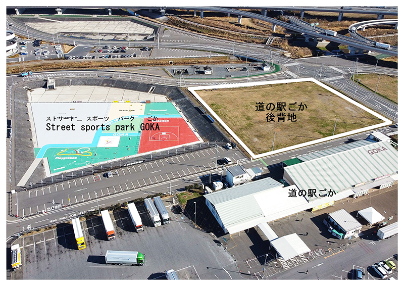 Street sports park GOKAは、県外からもたいへん多くの方に利用いただいており、スポーツ利用以外にも、ダンス撮影やテレビのロケ地としても利用され、今後も多方面での利用が期待されます。また、隣接している分譲地(約7,300㎡)を町で購入しており、更なる賑わいの創出を図るため、民間事業者の活力を活用し、周辺エリア一体での利活用について検討を進めています。