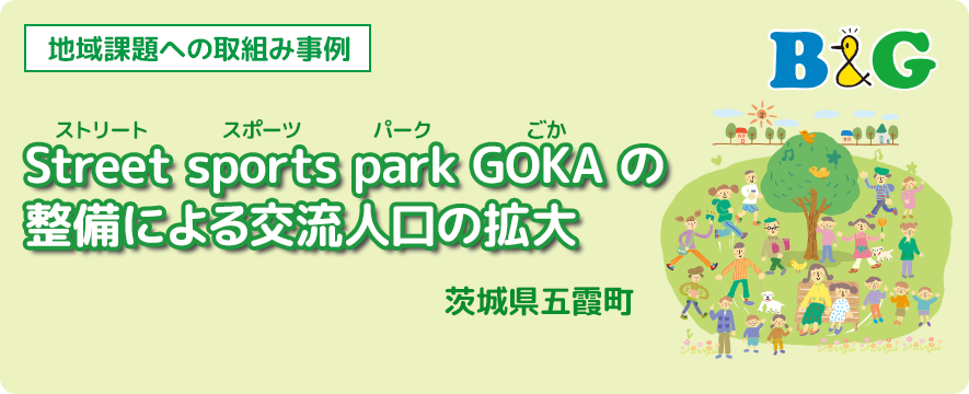五霞町では、インターチェンジ周辺土地区画整理事業によって整備された、ごかみらい産業団地内に設置された調整池を利活用し、新たに「Street sports park GOKA」を整備しました。