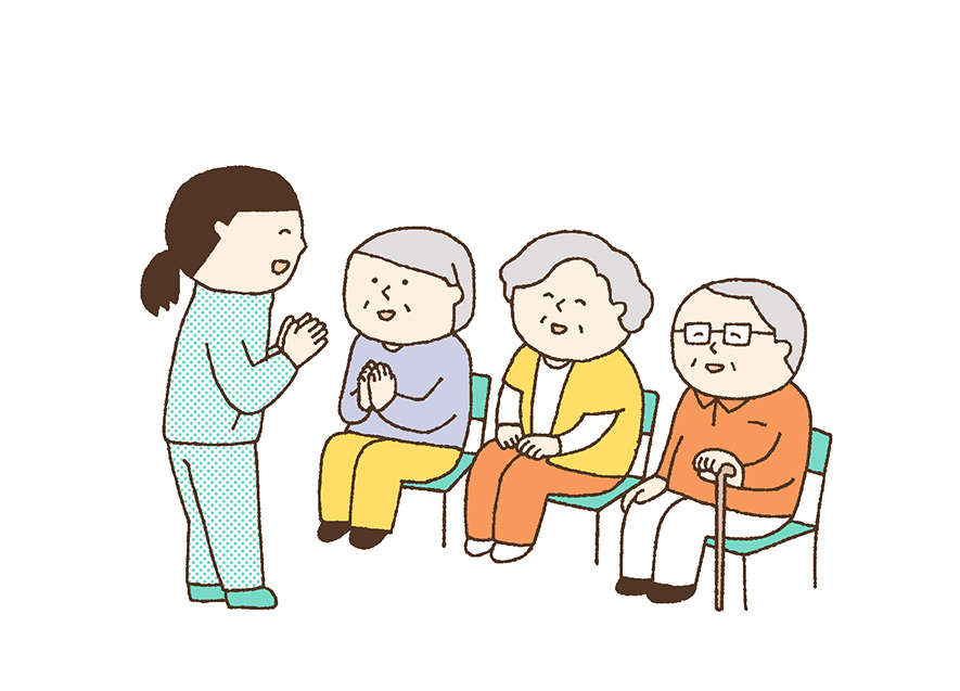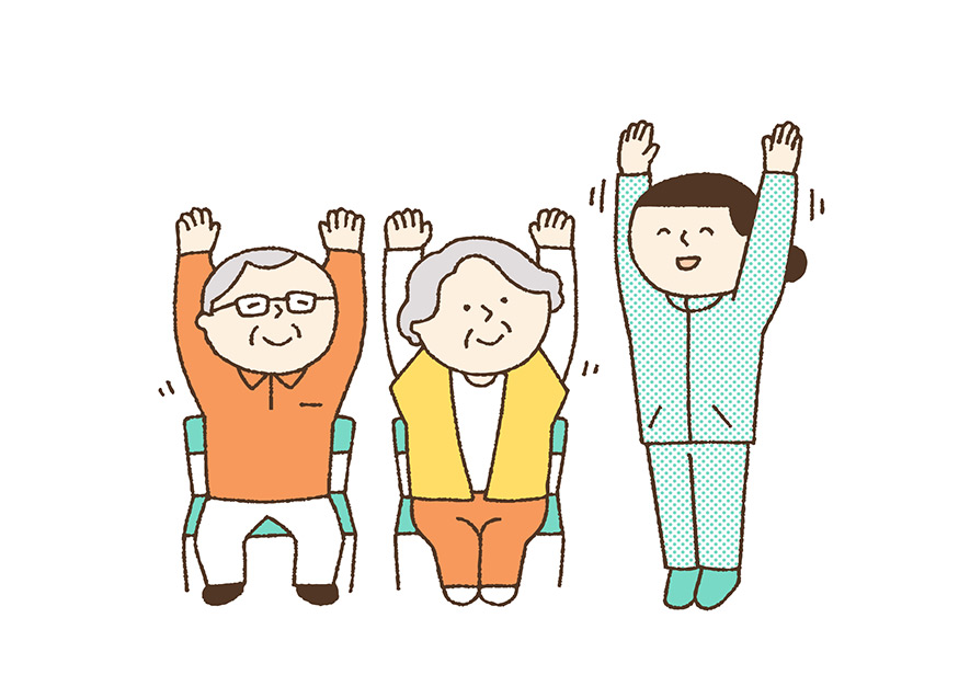 ⇒ 軽い筋力トレーニング、ストレッチ、椅子に座った状態でのリズム運動など