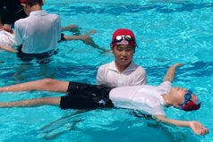 2020年度から小学校学習指導要領(小5・6年)には「安全確保につながる行動」として新たに「背浮き」が明記され、今後は全小学校で実施されるものです。
