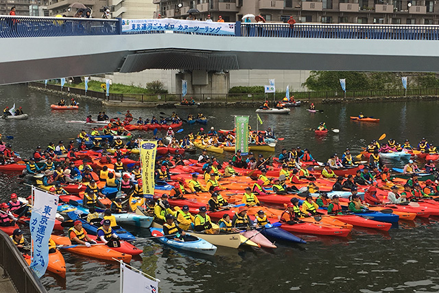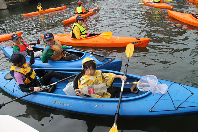 カヌー50艇で 東京運河のごみ清掃ツーリング!