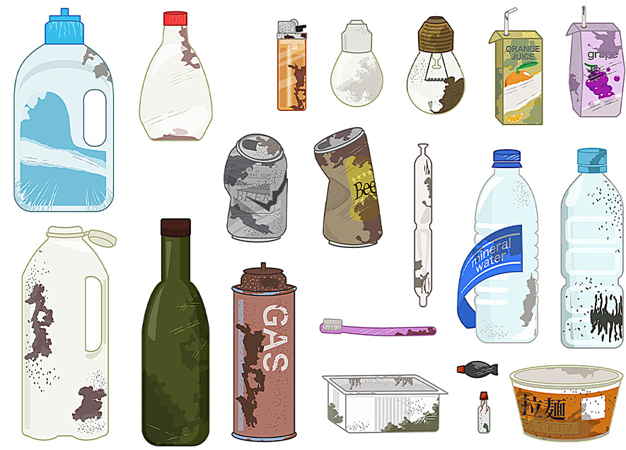 海岸や海中で発見されるゴミの多くは、決して海の中で発生したものではない。ペットボトルや食品の包装、使い捨てのストローやスプーン、タバコの吸い殻……、いずれも私たちの日常生活と密接に関わるものばかり。海に流れ着くごみの多くは、陸から運ばれてきている。