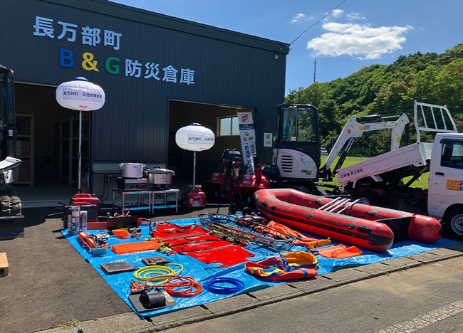 B&G財団は2021年度から「防災拠点の設置および災害時相互支援体制構築(以下、防災拠点事業)」事業に着手した。この事業は、災害時の緊急対応に必要な防災倉庫の整備をはじめ、油圧ショベルやスライドダンプ、救助艇などの資機材を配備するとともに、重機オペレーターなど現場で即応できる人材の育成や、周辺自治体との相互支援体制の構築を進めることで、地域防災力の向上を図る取り組みである。