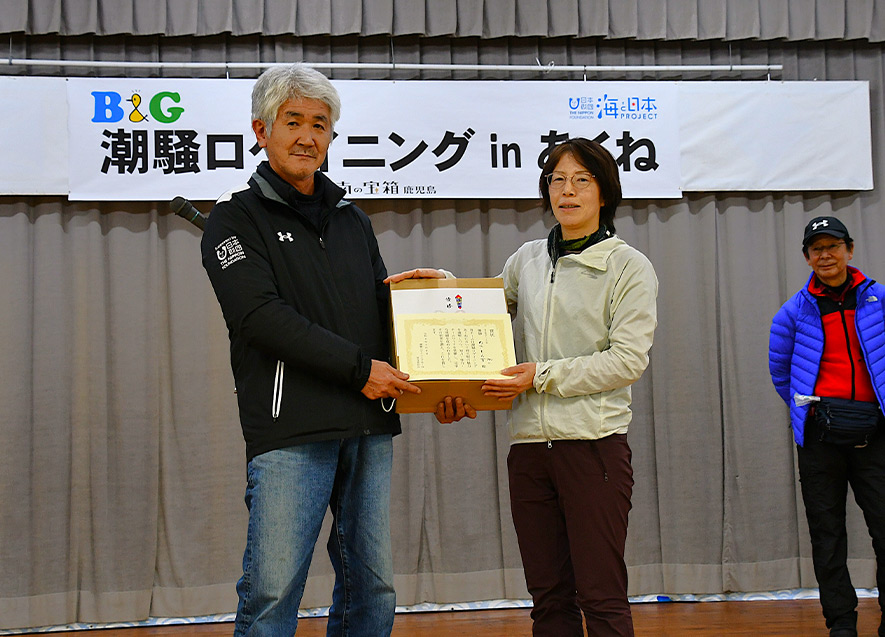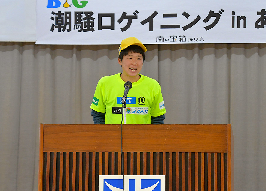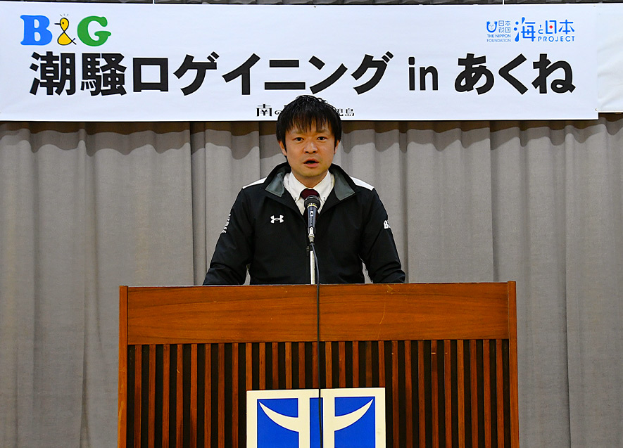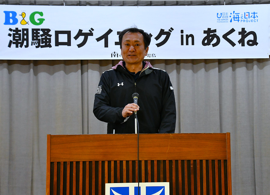 初めに、主催者を代表してB&G財団理事長の菅原があいさつに立ち、「ロゲイニングを通じて、市内の景勝地や名所を巡りながら、阿久根の魅力を存分に感じてほしい」と述べた。さらに「安全に十分配慮し、ケガのないよう最後まで楽しんでいただきたい」と呼びかけ、地域の新たな魅力発見の機会となることへの期待も語った。