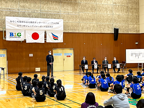 みやこ町内田町長は「昭和59年開設の海洋センターは、体育館とプールを備え、隣接するトレーニングセンター、陸上競技場と一体で地域住民のスポーツ拠点として親しまれてきました。今回の改修・バリアフリー化工事により、住民のみなさまに安心・安全な利用環境を提供できるようになり、車いす等の利用も快適となりました。少子高齢化が進むわが町において、老若男女、すべての住民を対象とした体力づくり・生きがいづくりの拠点として活用したい。」旨お話しくださいました。