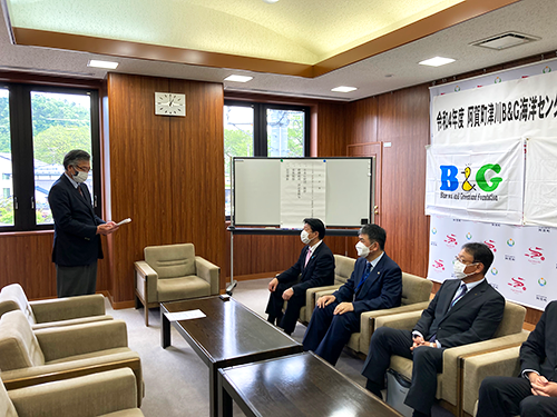 2022.05.12 UP 海洋センター修繕助成 新潟県阿賀町で助成決定書授与式を開催