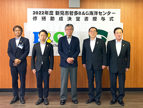 5月16日(月)、岡山県新見市役所で2022年度「地域海洋センター修繕助成」の決定書授与式が行われました。