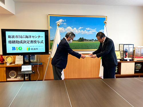 2022.06.02 UP 海洋センター修繕助成 富山県砺波市で助成決定書授与式を開催