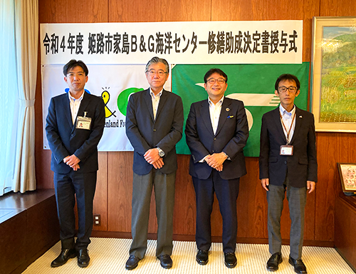 6月6日(月)、兵庫県姫路市役所で2022年度「地域海洋センター修繕助成」の決定書授与式が行われました。
