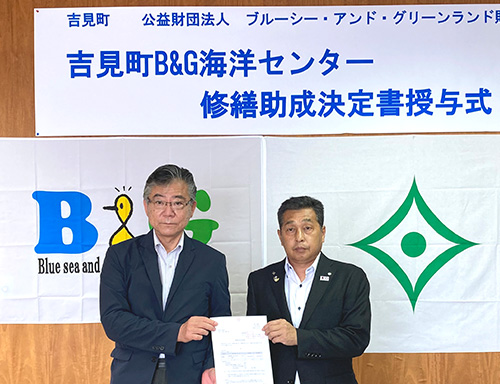 7月7日 埼玉県吉見町役場で2022年度「地域海洋センター修繕助成」の決定書授与式が行われました。