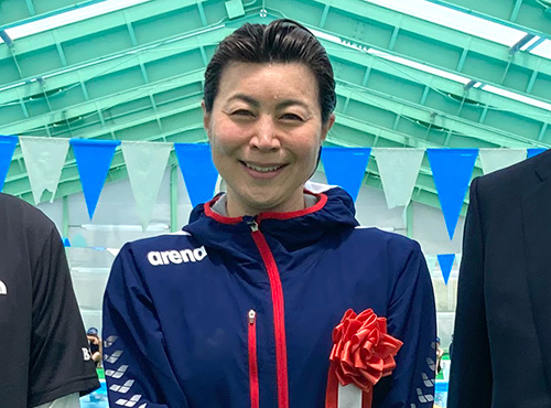 また、特別ゲストとして、シドニーオリンピック競泳銀メダリストの中村真衣さんが招かれ、記念講演、テープカット、泳ぎ初め式での模範泳法などを行い、大いに会場を盛り上げました。