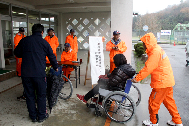 「住民受入れ訓練」経路の確認をしながら、自宅から海洋センターまで実際に避難します