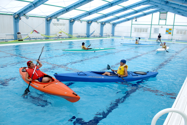 • 震災前に艇庫で開催していた「水上フェスティバル」も、指導者会の協力により、2012年からプールで再開。現在も子供たちへカヌーの楽しさを伝えるため、毎年夏に開催しています